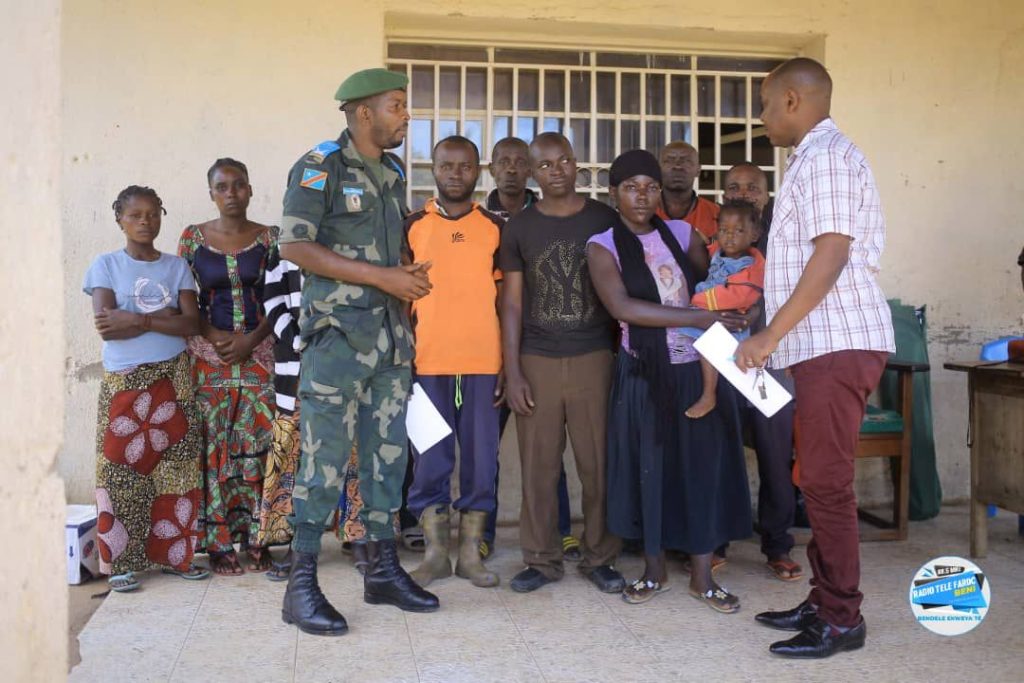 Onze otages kidnappés depuis le 23 février 2023 à KAÏNAMA dans le territoire de BENI en province du Nord-Kivu par les terroristes ADF/MTM ont été libérés par les Forces Armées de la République Démocratique du Congo après des affrontements en secteur de Rwenzori. Ces otages dont 5 filles et 6 hommes ont été remis ce vendredi 24 mars à la coordination urbaine de la société civile pour leur retour dans leurs familles respectives. « C’est par respect de droit de l’homme et du droit international humanitaire que l’armée congolaise remet les otages mineurs et adultes entre les mains des ONG oeuvrant dans la protection de droit de l’homme ainsi qu’aux différentes structures de la société civile » a expliqué le porte-parole de l’armée, secteur opérationnel Sukola1, le Capitaine Antonny Mwalushay. Pépin KAVITA, coordonnateur urbain de la société civile en ville de Beni se dit satisfait de la collaboration entre l’armée et sa structure citoyenne et surtout du travail remarquable accompli chaque jour par l’armée. « C’est grâce à ce travail que plusieurs vies sont sauvées » a-t-il renchéri