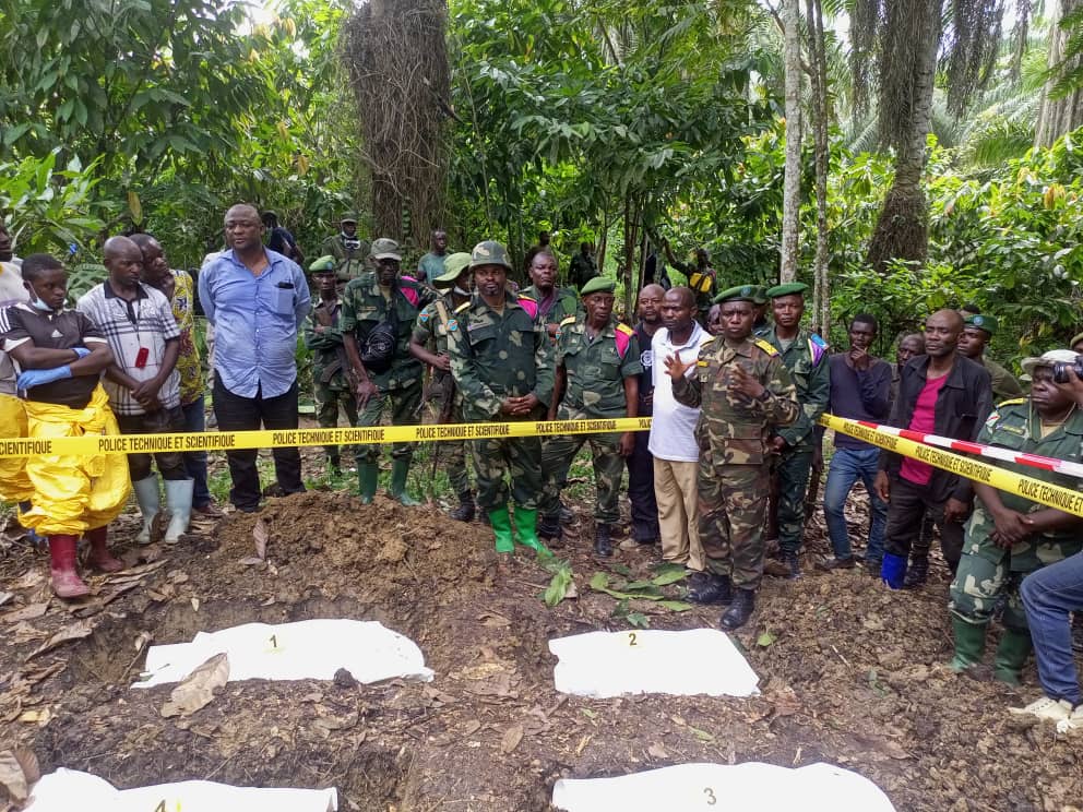 D’après le porte-parole des opérations Sokola1, le capitaine Antonny MWALUSHAY, ils ont pu identifier sur le lieu quelques scènes de crimes « 5 scènes de crimes ont été identifiés à la place communément appelée KIFRERE et 20 corps ont été identifiés et enterrés dans le respect de la dignité humaine » a-t-il dit