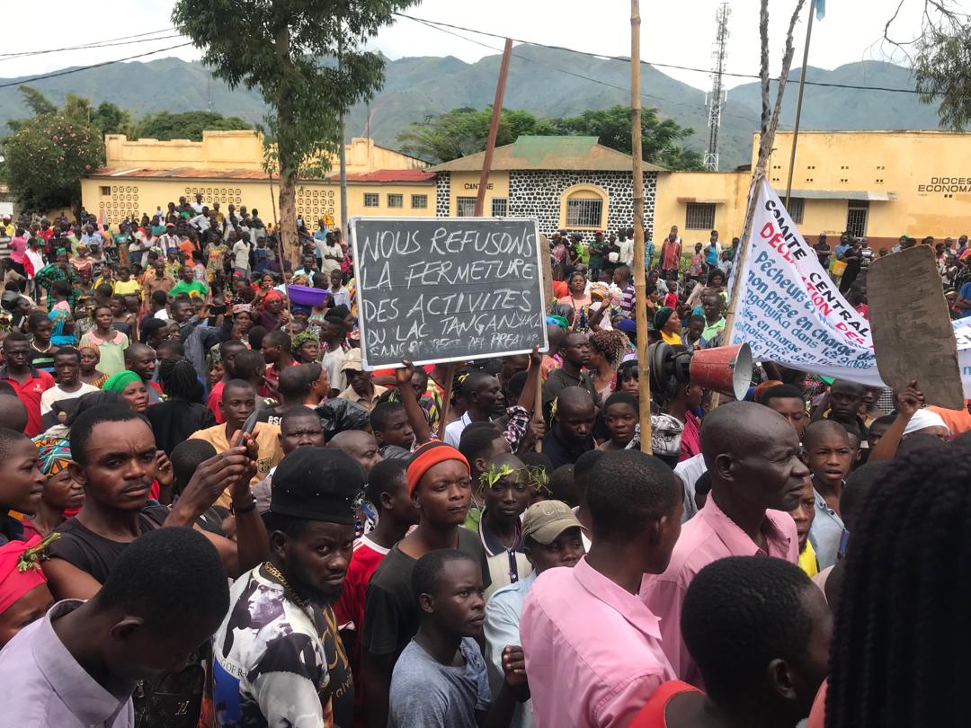 Ces hommes et femmes en colère qui vivent grâce aux eaux du lac tanganyika sont descendus dans les rues avec des banderoles sur lesquels on pouvait lire