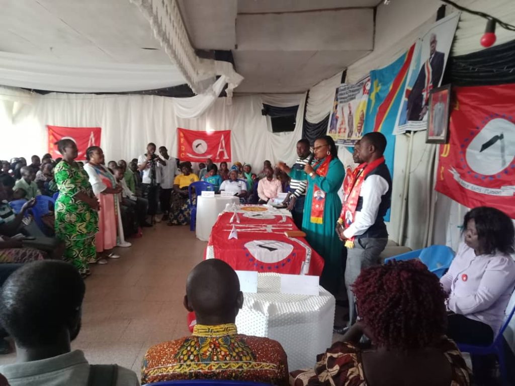 « Derrière moi il y a un groupe des camarades AFDC. Nous avons été envoyé par notre autorité morale, Modeste Bahati Lukwebo, président du sénat et président statutaire de l’AFDC. Le seul message qui est là est de réconforter les camarades de notre parti qui se lance au processus électoral. On ne doit pas avoir peur, car il y a espoir pour une réussite totale », a-t-elle fait savoir.