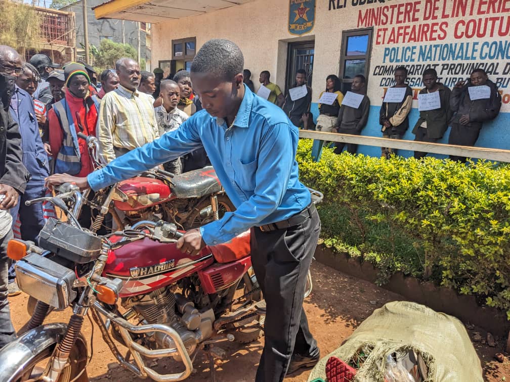 « Derrière moi vous voyez une bande de criminels. Ces sont des gens qui insécurisent la population » a affirmé le commissaire adjoint Kambale Katsumba Laurent, communicateur de PNC-Butembo.