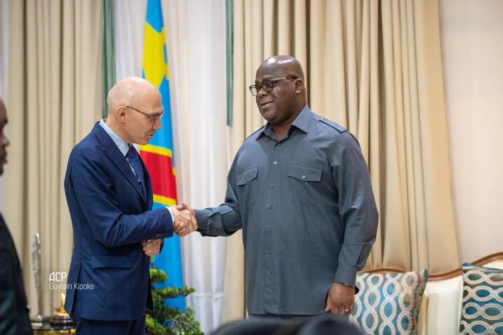 Jeudi 18 avril 2024, à la Cité de l’Union africaine, le Président Félix Tshisekedi a tenu une réunion avec Volker Türk, Haut Commissaire des Nations Unies aux droits de l’homme, à l’issue de sa mission de quatre jours en République Démocratique du Congo (RDC). Accompagné de Mme Bintou Keita, Cheffe de la Mission de l’Organisation des Nations Unies pour la stabilisation en RDC (MONUSCO), Türk a exprimé ses inquiétudes concernant la situation humanitaire dans l’Est du pays.