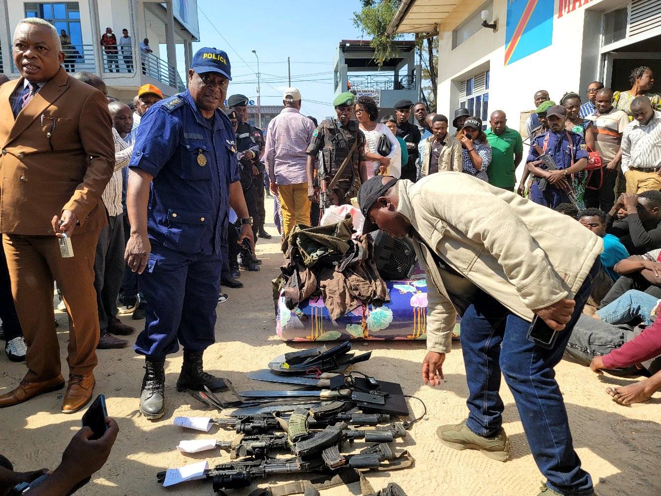 Deux présumés commanditaires du braquage survenu vendredi dernier dans une boutique du bâtiment commercial de la Mairie ont également été présentés. Aussi inclus dans cette présentation sont un présumé co-auteur d’un braquage à l’entrée présidentielle il y a deux mois, deux faux Wazalendo, quinze voleurs à main armée, et dix-huit autres personnes interpellées dans diverses circonstances au cours des opérations « Safisha muji wa Goma » (Assainir la ville de Goma).