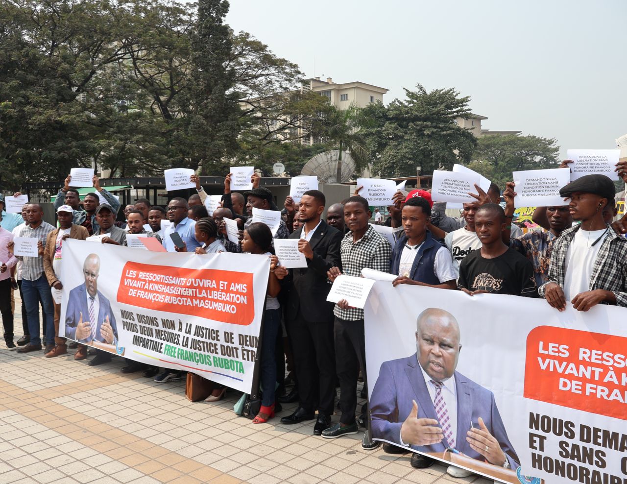 « Nous disons non à la justice de deux poids, deux mesures. La justice doit être impartiale. Free François Ruhobota », pouvait-on lire sur l’un des calicots portés par les manifestants.