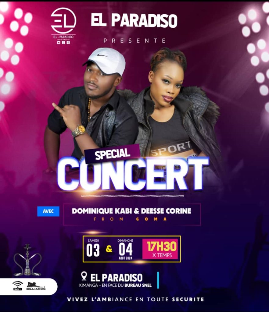 Ce sera la dernière prestation de Dominique KABI avant de s’en aller à Uvira, où il est attendu avec son groupe le samedi 3 et dimanche 4 août 2024 à l’espace El Paradizo.